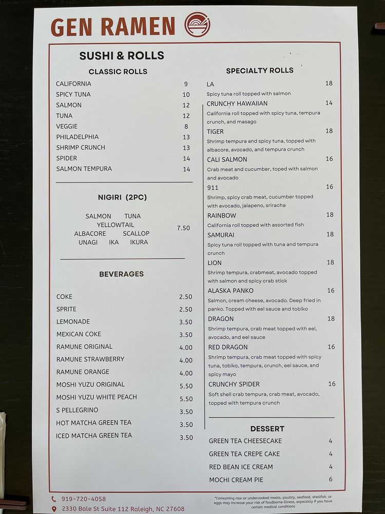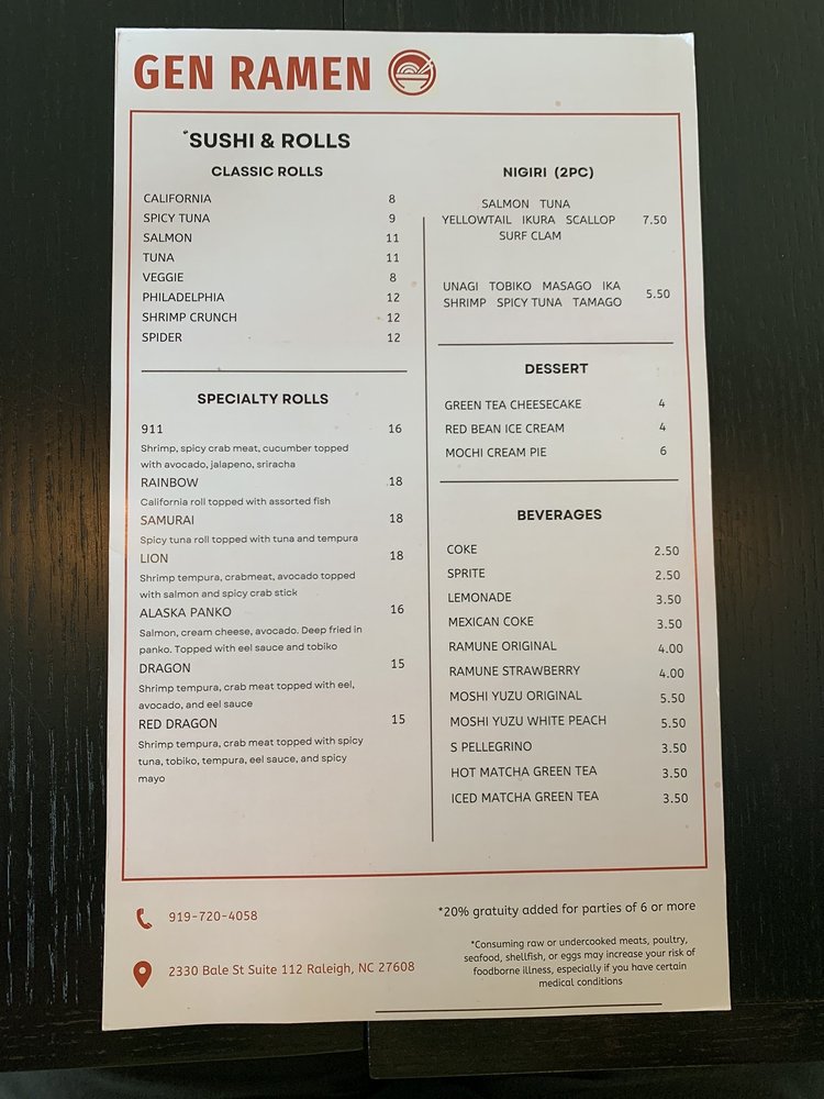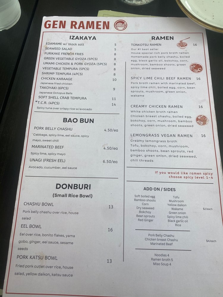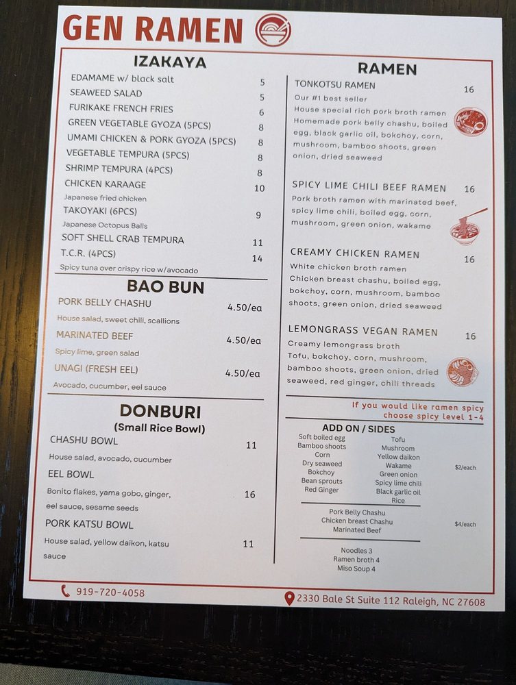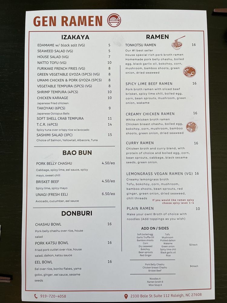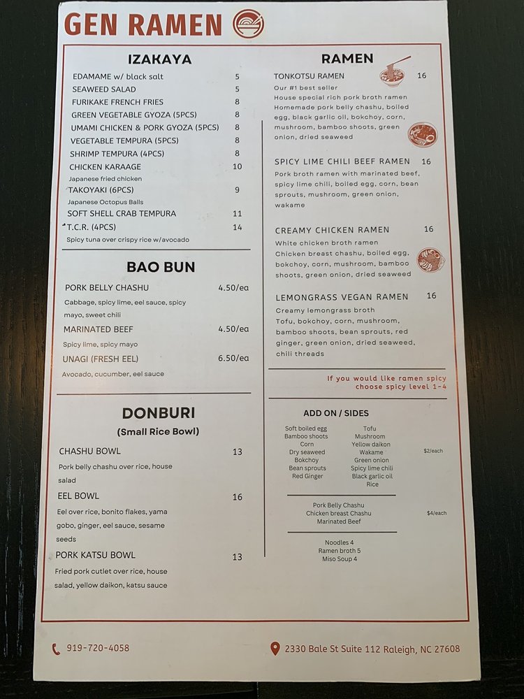 Welcome to Gen Ramen, a vibrant culinary hotspot located in Raleigh, NC, specializing in authentic ramen and donburi dishes. With a dynamic atmosphere adorned with Japanese anime touches, it provides a casual, trendy dining experience suitable for groups or a relaxed night out.