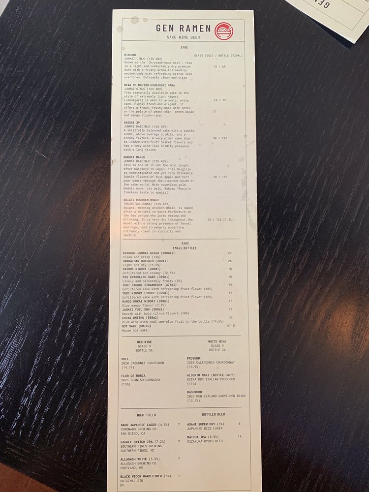 With excellent service and a selection of drinks, including sake, this ramen destination elevates your dining experience. Come visit Gen Ramen to enjoy comforting dishes amidst a lively yet relaxed ambience.
